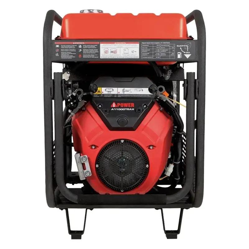 Бензиновый генератор A-iPower A11000TEAX предназначен для автономного электроснабжения потребителей однофазного и трехфазного тока. Номинальная мощность составляет 10 кВт. Устройство оснащено электростартером и разъемом для подключения блока автоматического ввода резерва — АВР. Отличительная черта этой модели — способность выдерживать кратковременную индуктивную нагрузку до 25 кВА, что позволяет подключать электрооборудование с высоким пусковым током. Топливный бак объемом 45 л обеспечивает около 8 часов непрерывной работы при 100%-ной нагрузке.