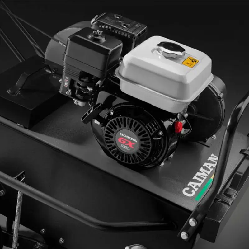 Аэратор Caiman AERO 55H оснащен валом с 30 износостойкими кернами, за счет чего способен пробивать почву на глубину до 70 мм. В инструменте установлен производительный 4-тактный двигатель Honda GX160. Благодаря верхнему расположению клапанов обеспечивается стабильная температура при работе.