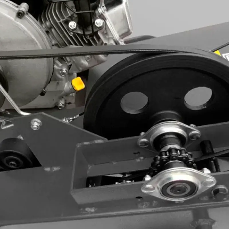 Благодаря ременно-цепному приводу чесалку для газона Caiman AERO 55H можно использовать для обработки тяжелой почвы без риска перегрузки оборудования. Роликовые подшипники, располагающиеся на оси, защищены от попадания воды и пыли, что также исключает поломки и продлевает срок эксплуатации.