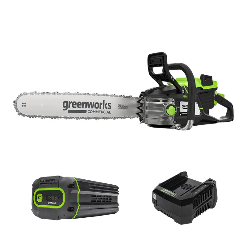 В комплект поставки также входят Аккумулятор Greenworks G82B8 (82 В, 8 Ач) и Зарядное устройство Greenworks GC82C (82 В, 12.4 А)