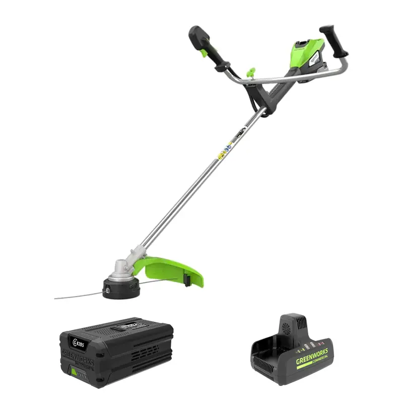 Мощный профессиональный аккумуляторный триммер Greenworks для покоса обширных площадей коммунальными организациями. Универсальный инструмент 3в1, в комплектацию которого входят: триммер с леской, трехлопастной нож для густой травы и диск-кусторез. Идеален для работы в местах, где шум бензинового двигателя не уместен: на территориях у жилых домов, учреждений, в парках. Подойдет и для большого загородного хозяйства.