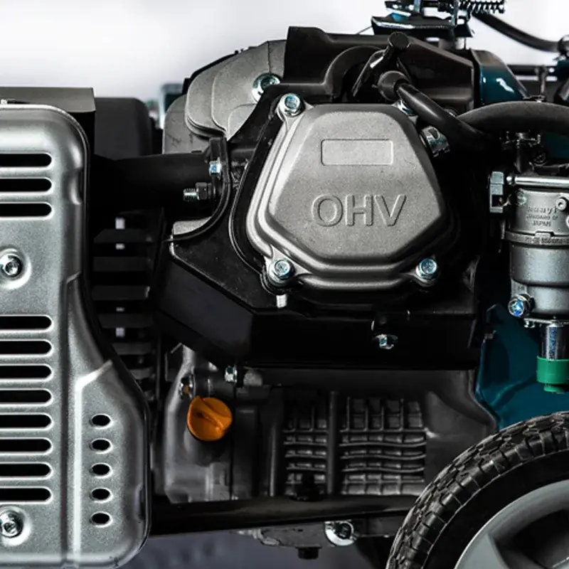 - Оснащены одноцилиндровыми, 4-тактными, бензиновыми двигателями с функцией «легкий старт» и датчиком низкого уровня масла