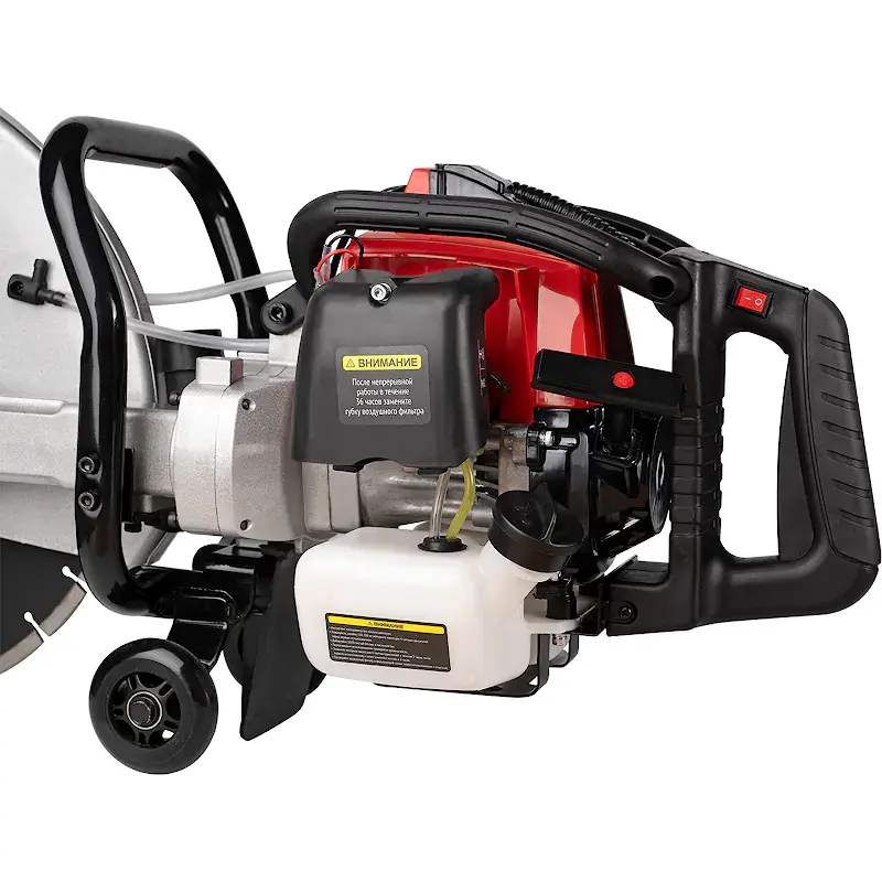 Бензорез работает с дисками диаметром 420 мм, которые обеспечивают максимальную глубину реза 155 мм. Благодаря системе легкого запуска не нужно прикладывать излишних усилий для вытягивания троса ручного стартера. Насос предварительной подкачки топлива в карбюратор позволяет без проблем завести холодный двигатель при любой температуре окружающей среды.