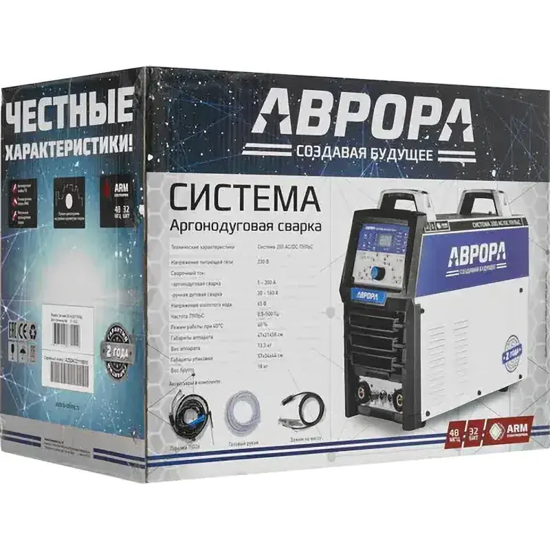Аппарат аргонодуговой сварки Aurora СИСТЕМА 200 AC/DC ПУЛЬС с максимальной потребляемой мощностью 4,8 кВт обеспечивает высокое качество сварочных швов. Широкие функциональные возможности устройства позволяют сваривать любые виды сплавов и металлов, включая алюминий, медь, латунь. Аппарат работает с постоянным и переменным сварочным током в диапазоне от 10 А до 200 А и подключается к однофазной электросети с напряжением 220 В. Инверторная технология обеспечивает легкое поджигание дуги, стабильный ток, высокую эффективность и энергосбережение.