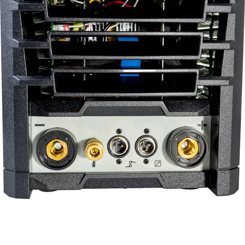 Сварочный инвертор TIG имеет сенсорную кнопочную панель для гибкой настройки сварочного процесса. Циклограмма со светодиодной индикацией обеспечивает удобство введения значений. Центральная поворотная ручка позволяет установить необходимый уровень тока, который отображается на дисплее. В устройстве можно сохранить готовые последовательности с заданными настройками и затем выгрузить их из памяти, чтобы быстро приступить к работе.