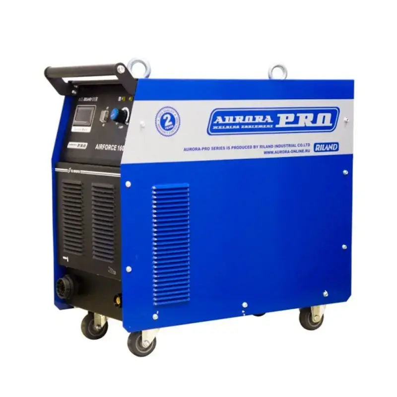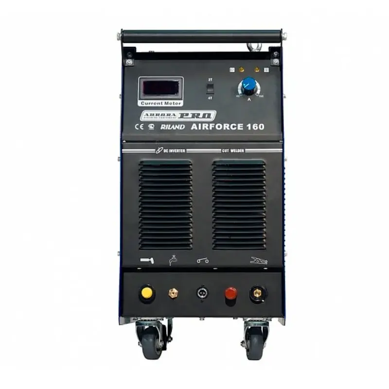 AIRFORCE 160 - самый мощный инверторный источник ручной плазменной резки из линейки AuroraPRO. Предназначен для разделки любых токопроводящих материалов: мягкие стали, нержавеющие стали, оцинкованные стали, алюминий, медь и различные сплавы. Работа с данным аппаратом отличается высоким качеством и высокой скоростью резки. Бесконтактный поджиг дуги с высокочастотным управлением облегчает поджиг, делает стабильным каждый старт и увеличивает срок службы расходных материалов горелки. При режущем токе 160А, аппарат способен справляться с конструкционной сталью толщиной до 50мм. А при толщинах до 40 мм, АИРФОРС 160 уверенно чувствует себя даже при продолжительных работах. Для удобства перемещения предусмотрены 4 колеса и тельферные кронштейны (рымы). К аппарату необходимо также подключить компрессор для подачи сжатого воздуха.