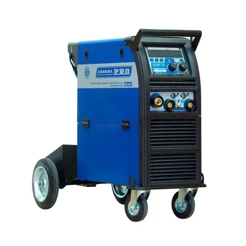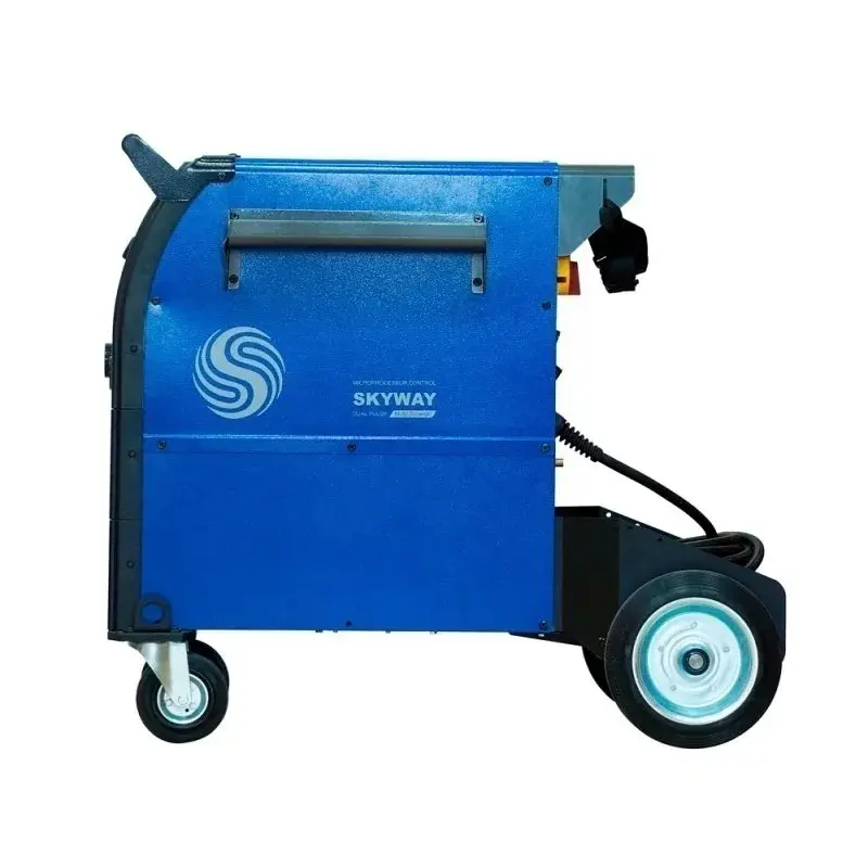 Инверторный сварочный полуавтомат AuroraPRO SKYWAY 350 DUAL PULSE с воздушным охлаждением позволяет работать в режимах MIG-MAG, TIG, а также MMA. Модель совместима с катушками D300 весом до 20 кг, а также имеет тележку с подставкой для баллона, что упрощает использование техники.