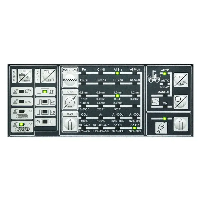 - Синергетические программы аппарата адаптированы для работы со диаметрами проволок от 0.8 мм до 1.6 мм и с большим количеством защитных газов и смесей.