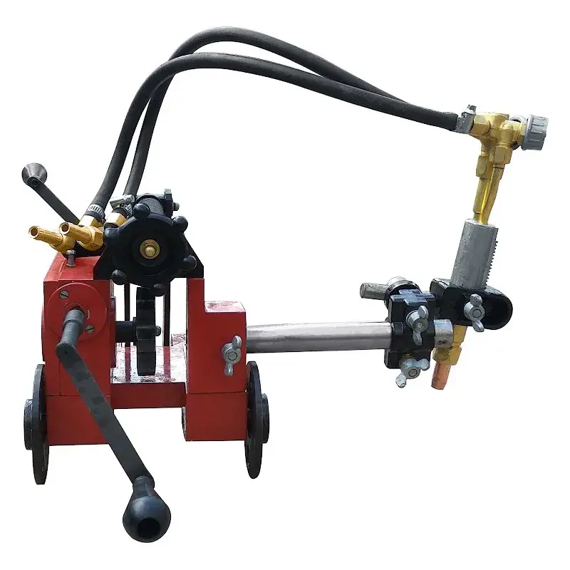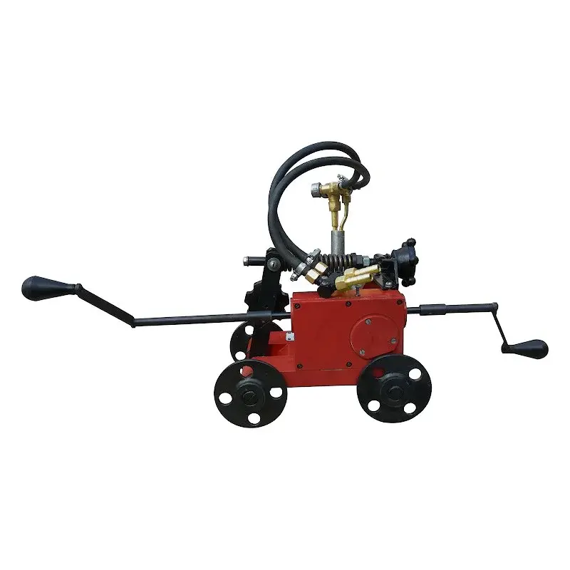 Движение тележки осуществляется с помощью ручного привода, звездочки и приводной роликовой цепи. Цепь наборная и может набираться до требуемой длины в зависимости от диаметра разрезаемой трубы.