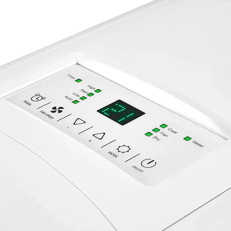 Кондиционер оборудован светодиодными индикаторами и ЖК-дисплеем, на котором отображается установленная температура. Все настройки можно выполнять с помощью пульта ДУ или сенсорных кнопок на панели. 24-часовой таймер включения и выключения прибора позволит сделать климат комфортным в заданном промежутке времени.