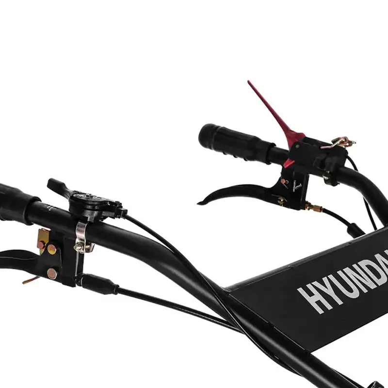 Бензиновый мотоблок имеет механическую трансмиссию и может двигаться задним ходом. Скорости переключаются специальным рычагом рядом с рукоятью управления. Перед тем как включить одну из двух передач, необходимо зажать сцепление. Реверс запускается отдельной ручкой. Он пригодится, при маневрировании в узких местах, а также для того, чтобы извлечь фрезы из земли.