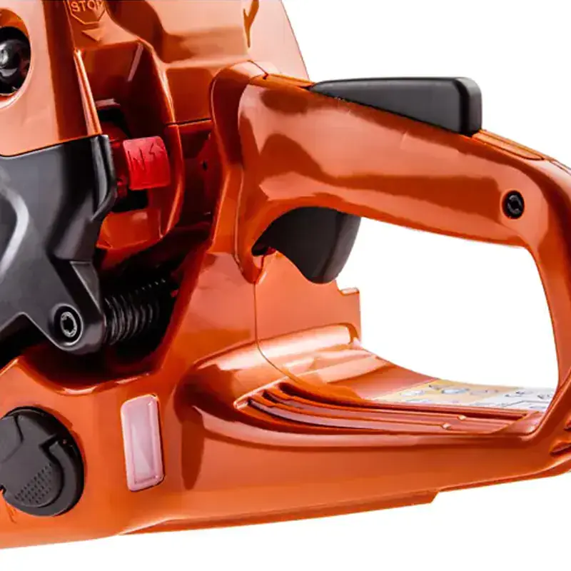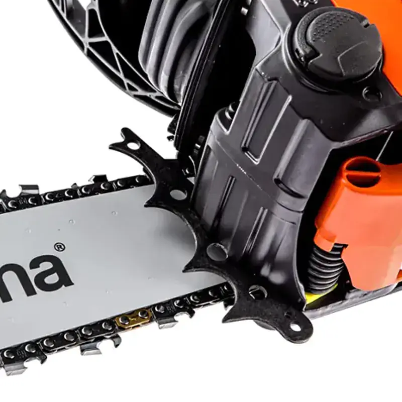 - Передняя опорная рукоятка расположена близко к центру тяжести, что дает возможность лучше контролировать процесс пиления.