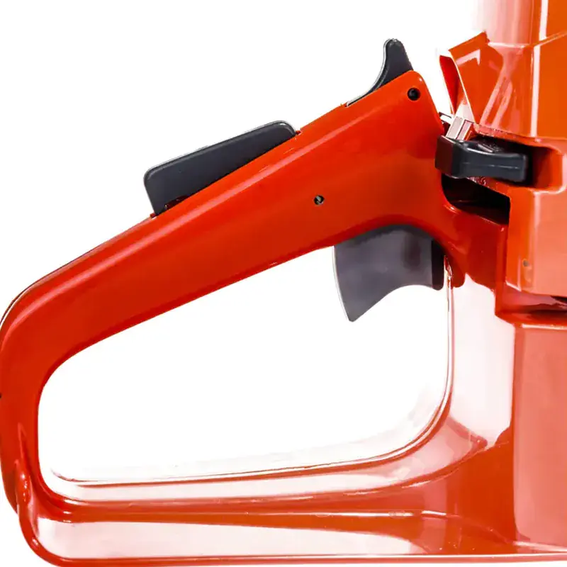 Интересная черта конструкции — в расположении ручки под углом более острым, чем в большинстве других моделей. Это обеспечивает удобный хват, естественное расположение рук и уменьшает усталость при долгой эксплуатации. Вероятно поэтому 61-я Хускварна до сих пор актуальна.