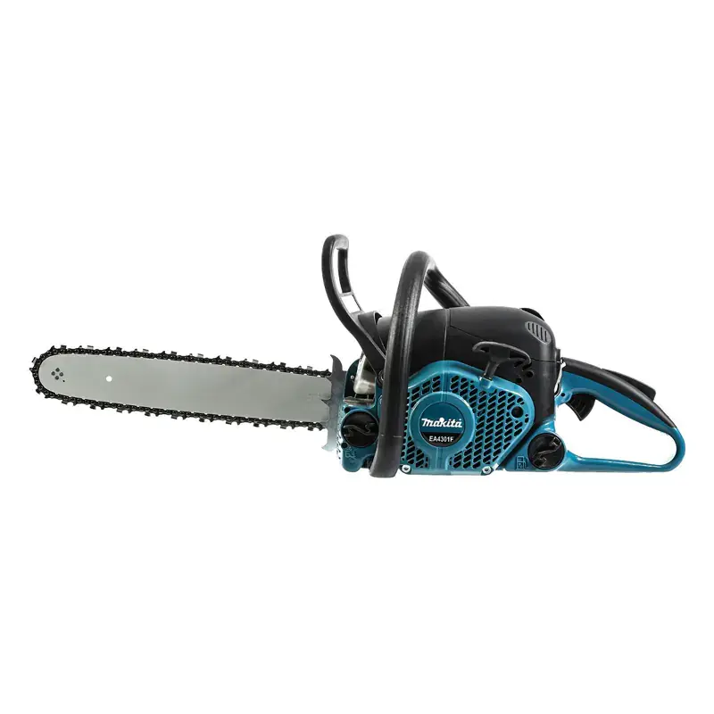 Бензопила Makita EA4301F38C - профессиональная цепная пила. Она оснащена мощным двухтактным бензиновым двигателем мощностью 3 л.с (при объеме 42.4 кубических сантиметров), который позволяет легко выполнять работы по распилу бревен особо прочных пород дерева. Шина длиной 38 см обеспечит быструю обработку бревен малых и средних размеров.