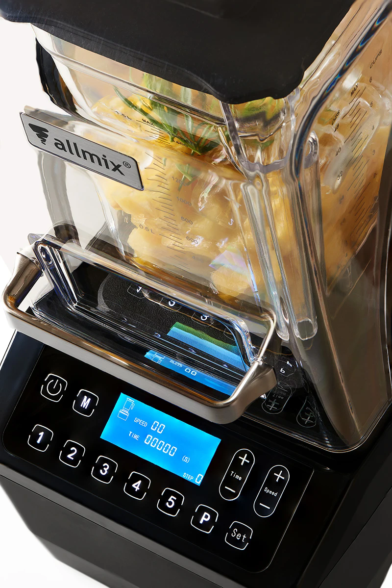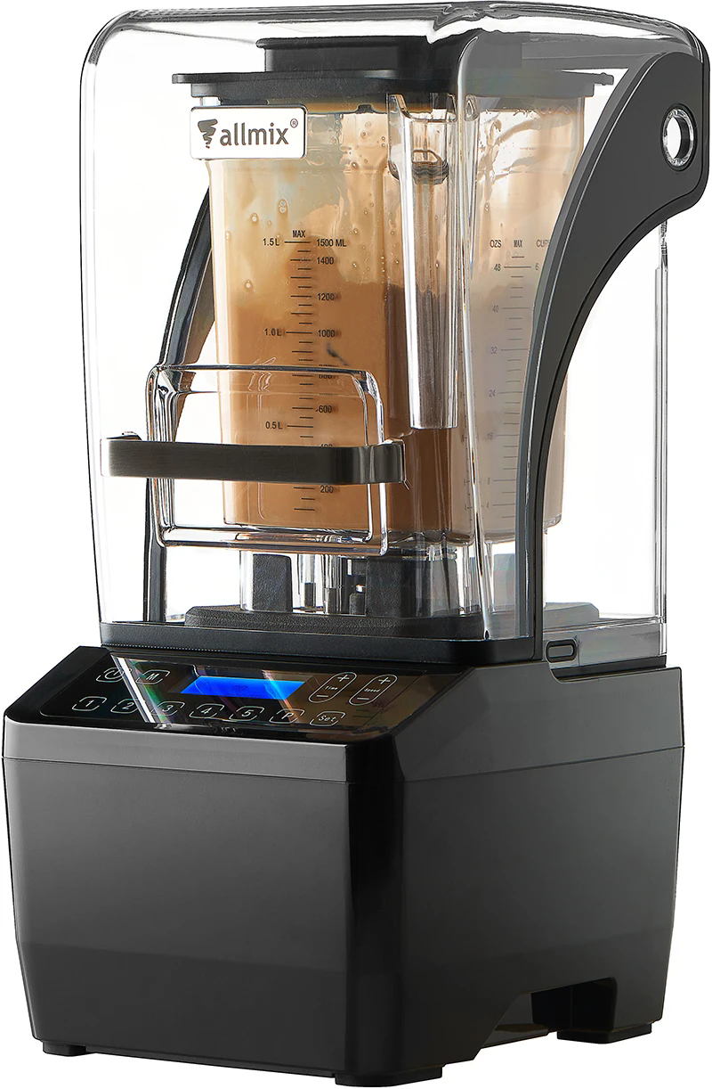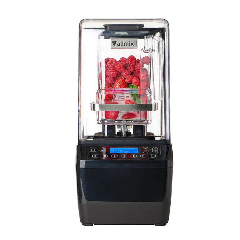 Блендер Allmix AMX-885 мощностью 1500 Вт. со звукоизолирующим кожухом из поликарбоната, тачскрин клавиатурой из минерального стекла с подсветкой, графическим дисплеем, приводом "металл-металл" и возможностью создания собственных программных циклов непосредственно с клавиатуры блендера.