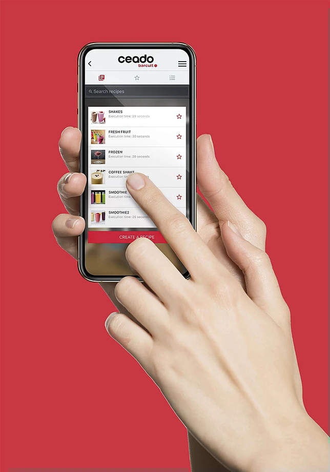 Приложение Ceado Barcult позволяет программировать автоматические циклы прямо со смартфона или планшета. Бесконечные рецепты для создания и обмена, оптимизации работы и улучшения производства смесей или основ для коктейлей.