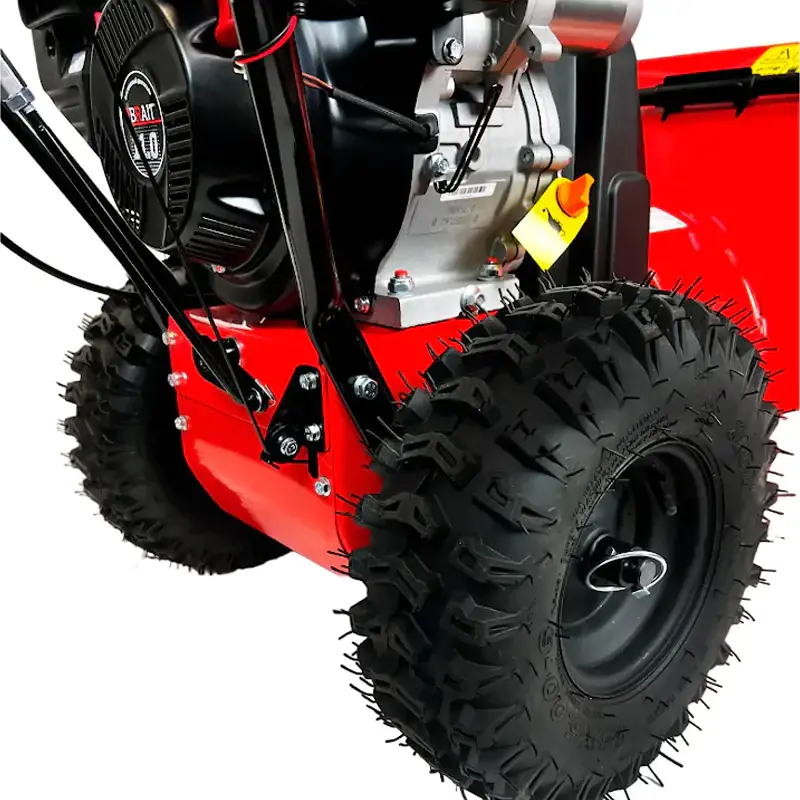 Снегоуборщик BRAIT BR-1172ELWS-4 имеет два стартера: ручной и электрический. Праймером для подкачки топлива облегчает запуск холодного двигателя. Если поблизости есть доступ к электричеству, достаточно воткнуть вилку в розетку и нажать на кнопку электростартера, чтобы завести мотор.