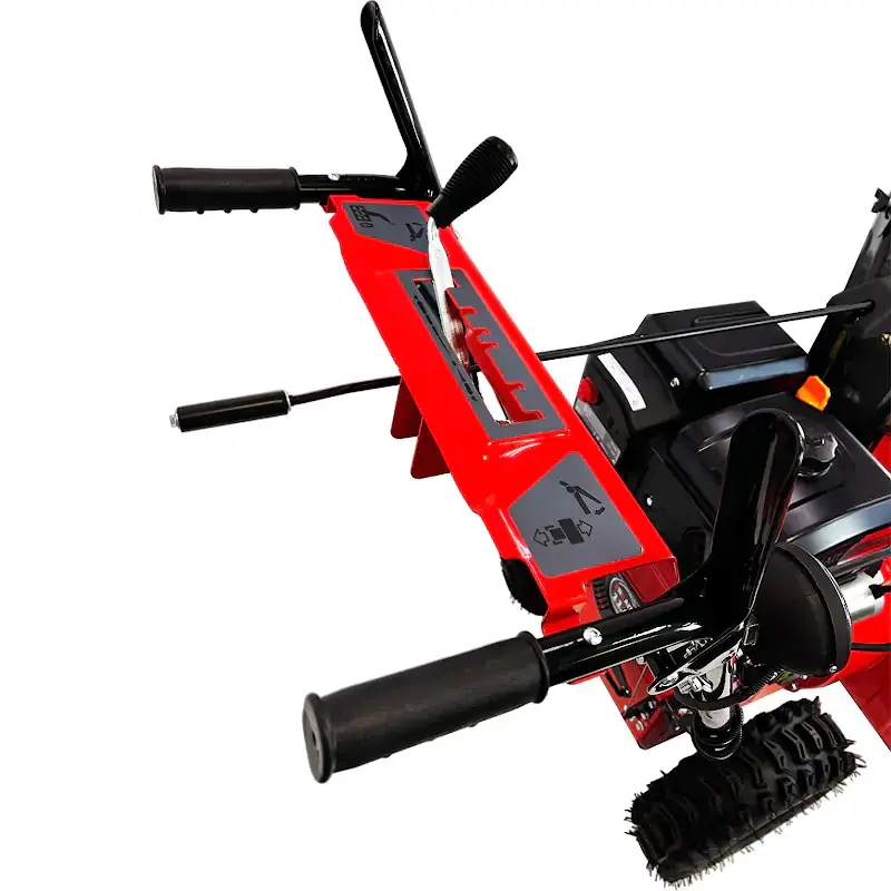 Снегоочиститель оснащен удобными элементами управления. Прорезиненные рукоятки удобно удерживать, даже работая в перчатках и рукавицах. Светодиодная фара обеспечивает не только дополнительное яркое освещение, но и безопасность проведения работ вдоль проезжей части.
