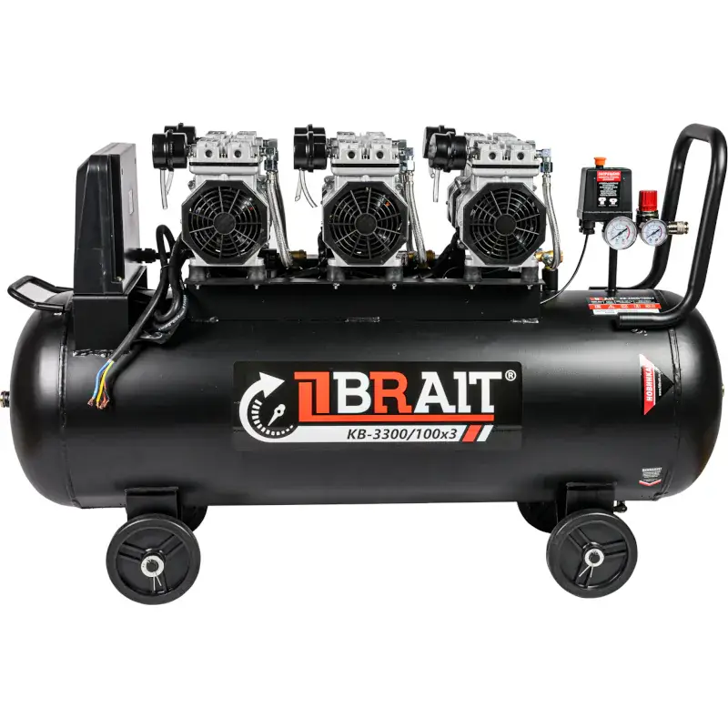 Воздушный компрессор BRAIT КВ-3300/100Х3 используется для производства сжатого воздуха в большом объеме. Конструкция включает в себя ресивер. Это позволяет воспользоваться запасом сжатого воздуха и избежать кратковременных включений двигателя.