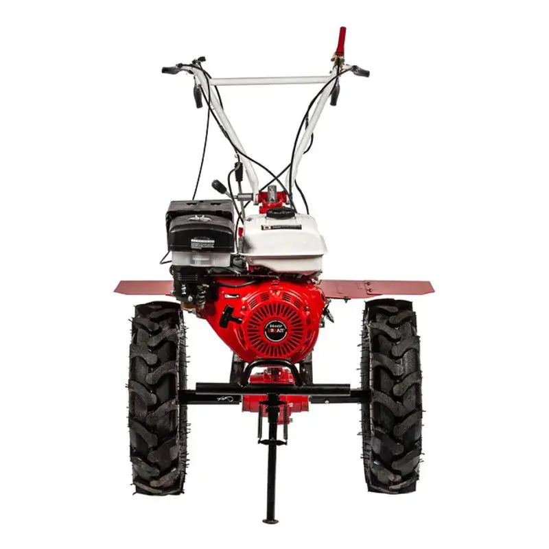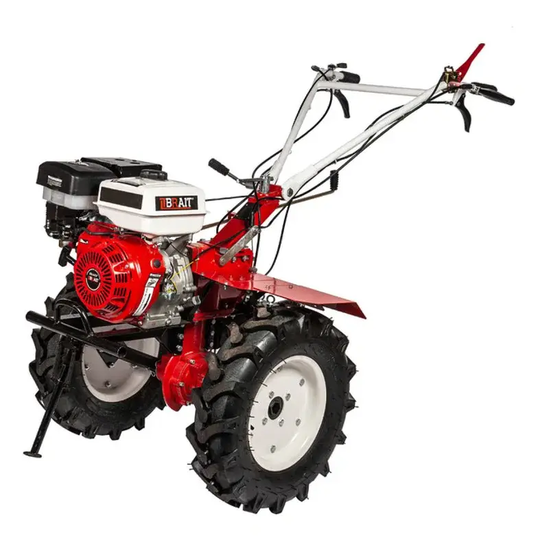 BRAIT BR-135GBD с дифференциалом — один из самых удобных в использовании вариантов. В конструкции такого изделия предусмотрена эргономичная рукоять с качественными прорезиненными накладками. Хват очень комфортный, можно выполнять работы в течение длительного времени и руки не будут уставать. Также эта модификация имеет многофункциональную поворотную ручку управления. Положение агрегата можно изменять в любом направлении. При необходимости удастся аккуратно выполнять работы в местах, к которым доступ по тем или иными причинам осложнен. Отличную проходимость обеспечивают большие пневматические колеса.