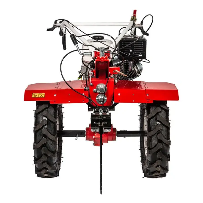 - Большие пневматические колёса 5х12 обеспечивают отличную проходимость мотоблока по местности.