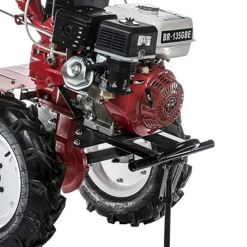 Бензиновый мотоблок BRAIT BR-135GBE с электрозапуском разработан специально для обработки участков большой площади. В комплекте к этому агрегату идут колеса, фрезы, аккумулятор, сцепка (является стандартной, может быть использована с любым плугом, окучником, тележкой и иным дополнительным оборудованием), технический паспорт, инструкция, гарантийный талон. Чтобы собрать мотоблок после покупки, не придется тратить много времени и сил. Для перевозки такой модели не потребуется грузовая машина. В собранном виде изделие легко помещается в багажник легкового автомобиля.