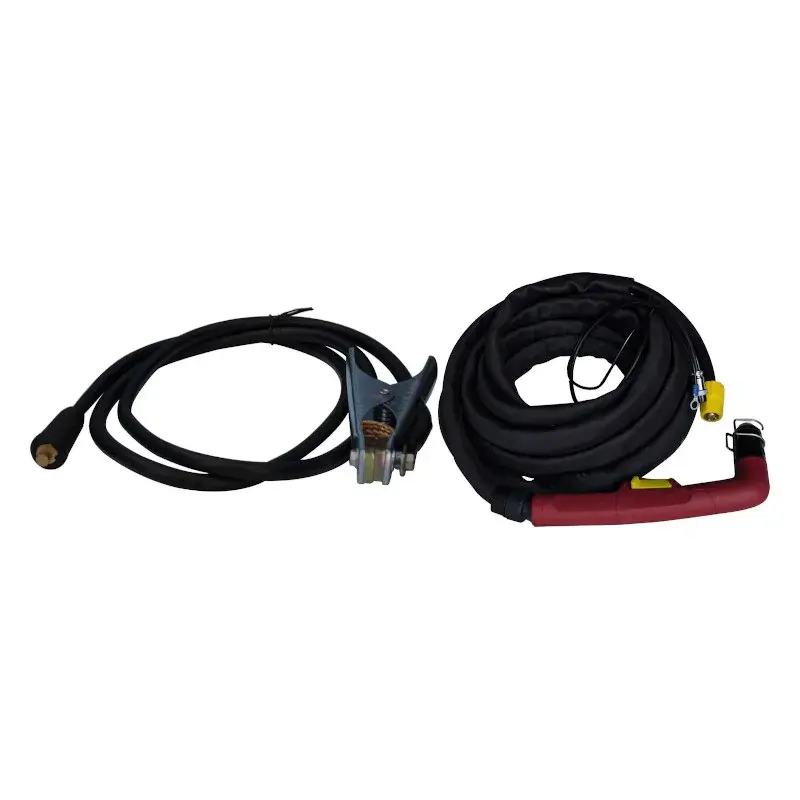 - Подключение кабелей. Специальные силовые разъемы инвертора плазменной резки BRIMA CUT-120 служат для быстрого подключения горелки и кабеля массы.