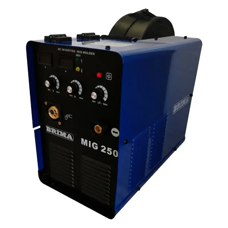 Сварочный полуавтомат BRIMA MIG-250 – инверторный аппарат, который выдает максимальный сварочный ток 250 А. Модель позволяет работать с использованием сплошной проволоки в среде защитных газов, а также в режимах MAG и MIG.