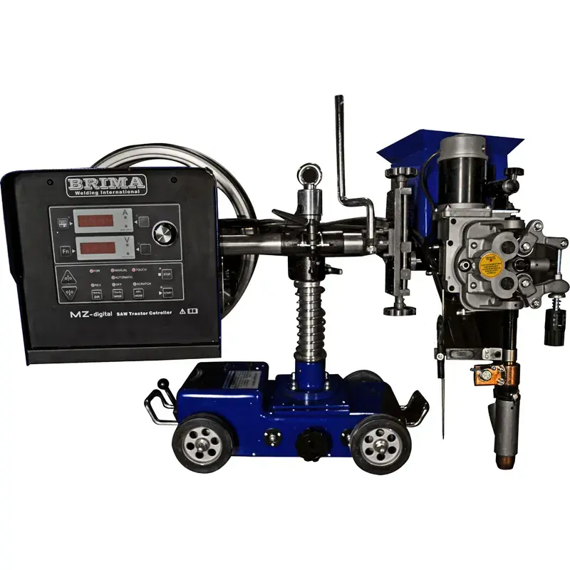 Сварочный трактор BRIMA MZ-1250 – предназначен для автоматической сварки под слоем флюса (SAW). Аппарат также можно использовать для ручной дуговой сварки, наплавки и воздушной строжки. Он способен производить сварку проволокой до 6 мм, а олщина свариваемого металла за один проход может достигать 30 мм. Оборудование позволяет сваривать такие материалы как нержавеющая, легированная, углеродистая стали, медь и другие цветные металлы.