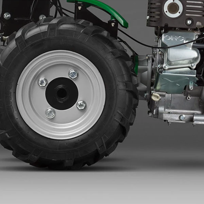 Бензиновый мотоблок CAIMAN оснащен пневматическими колесами с глубокими протекторами, которые отличаются хорошей проходимостью в непогоду. Фрезы закрыты защитным кожухом во избежание получения травмы. Благодаря устройству безопасности вы не сможете включить одновременно заднюю скорость и роторный культиватор.