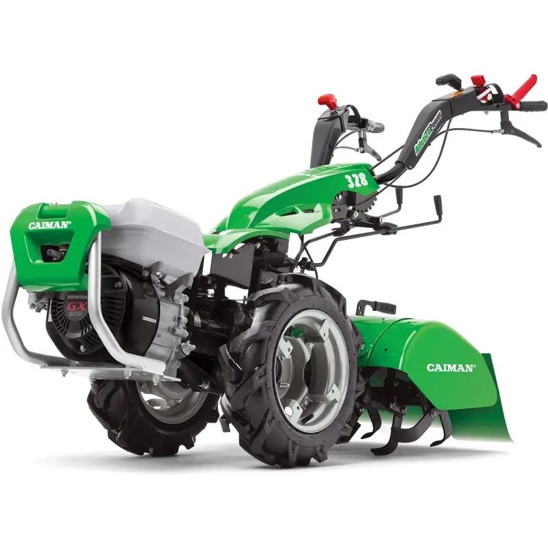 Мотоблок Caiman Atletico 328 P – многофункциональный двухколесный трактор с профессиональным бензиновым двигателем Honda мощностью 5,5 л.с., реверсивной рукояткой управления, гидравлическим сцеплением PowerSafe® и шириной обработки почвы до 80 см (в зависимости от выбора навесного приспособления).