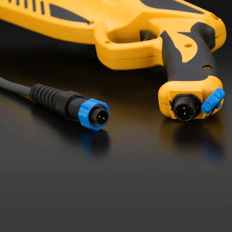 - Быстросъемное проводное соединение инструмента с аккумуляторной батареей