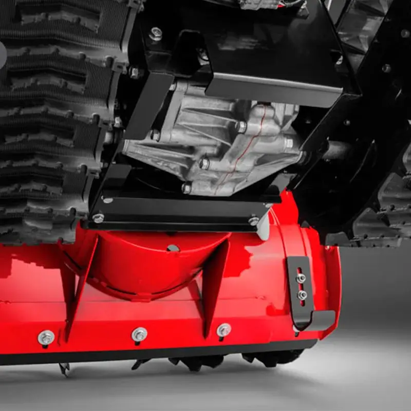 - Гусеничный ход. Использование гусениц обеспечивает непревзойденную проходимость на любых поверхностях – скользких, заснеженных, даже по глубокому снегу. Это идеальное решение для работы на неровных рельефах, склонах, так как гарантирует полную управляемость.
