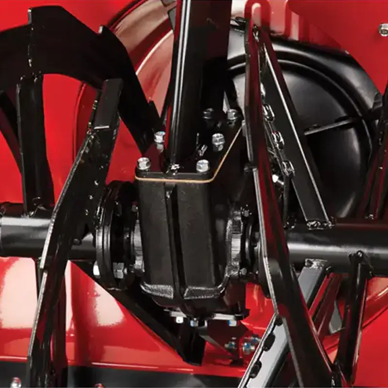 2 ступень — крыльчатка с частотой вращения 1200 об/мин. Её лопасти усилены металлическими пластинами, чтобы отбрасывать снег на расстояние до 20 метров.