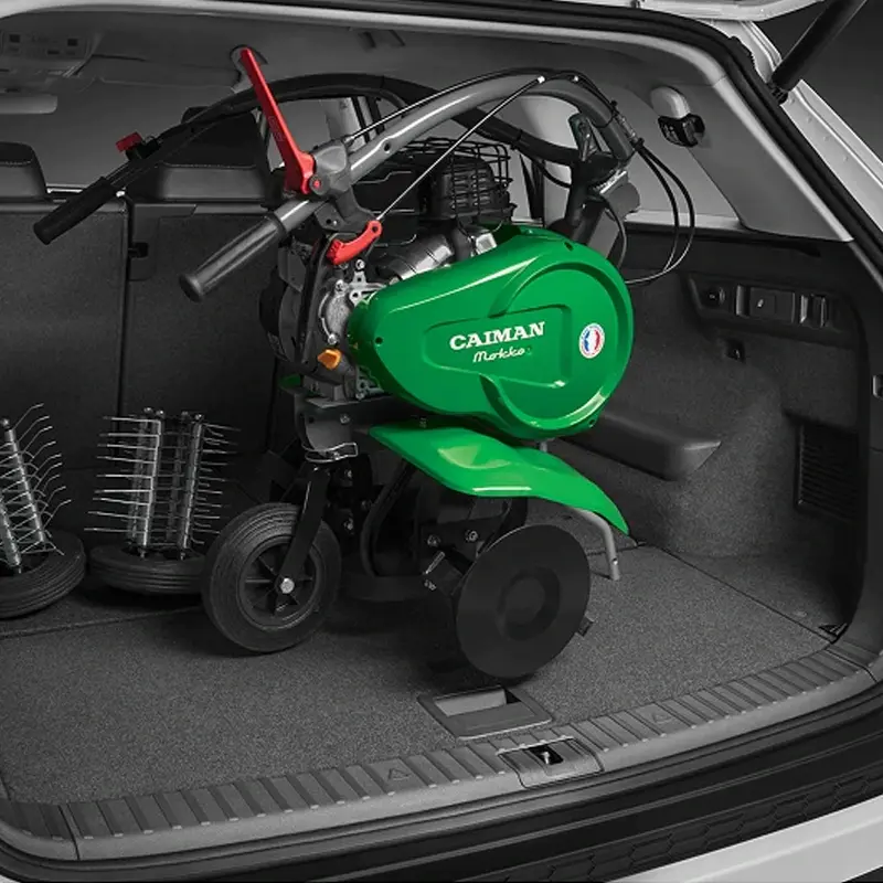 Бензиновый культиватор Caiman MOKKO 40 C2 способен обработать участок площадью до 800 м2 с глубиной вспашки 285 мм. Для удобного перемещения спереди предусмотрено транспортировочное колесо.