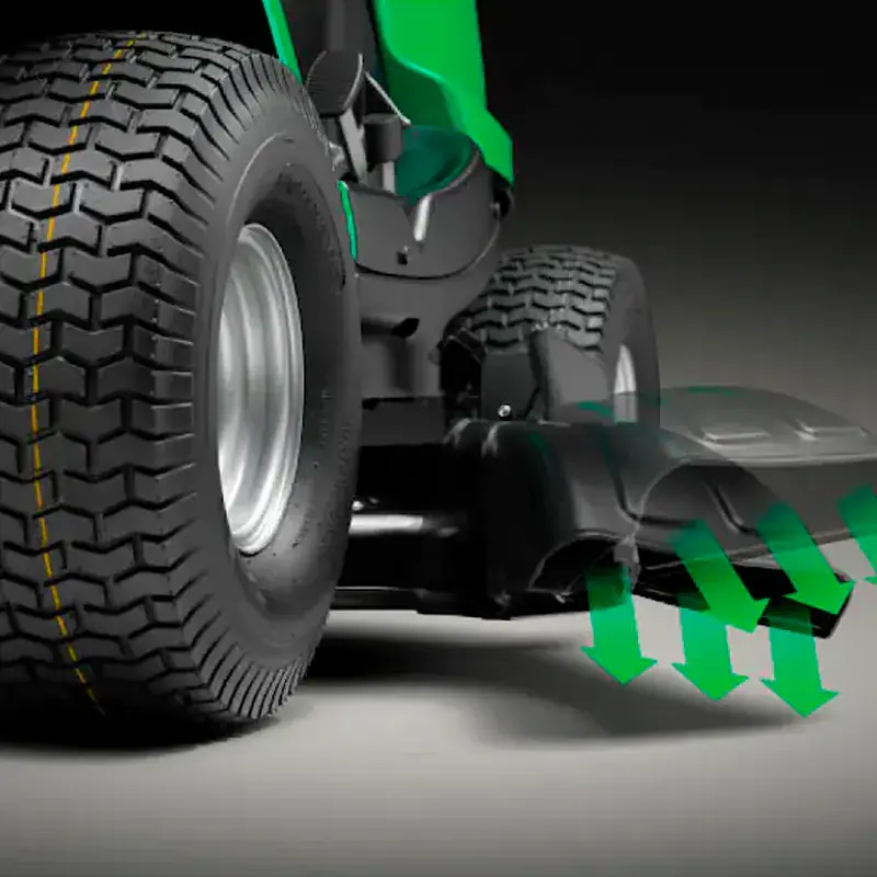 - Широкие колеса с дерновыми покрышками