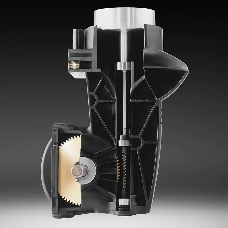Червячный редукторКультиватор оснащен компактным червячным редуктором с плавным ходом, который отличается низким уровнем шума благодаря высокому уровню сцепления. Редуктор обеспечивает повышенный показатель крутящего момента за счет зазубренного винта, приближенного по форме к трапециевидному профилю. Также стоит отметить наличие системы самоторможения: при отсутствии движения редуктор замедляет ведущий вал до полной остановки.