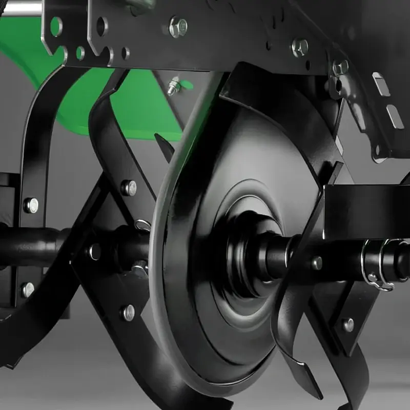Регулируемая рукоятка Удобная эргономичная рукоятка культиватора легко регулируется под рост оператора. Имеется два положения регулировки.