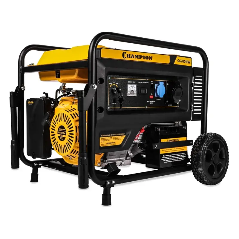 Генератор бензиновый Champion GG7001EW представляет собой источник качественного тока. Контроль за напряжением обеспечивает стабильность синусоиды даже при резком изменении уровня потребления электротока как в большую, как и в меньшую сторону. Также устройство защищено от влаги со всех сторон. В том числе имеют надежную влагозащиту и сами розетки - на них установлены заглушки, которые исключают попадание воды на контакты. Это защищает от короткого замыкания при работе на улице в дождливую погоду.