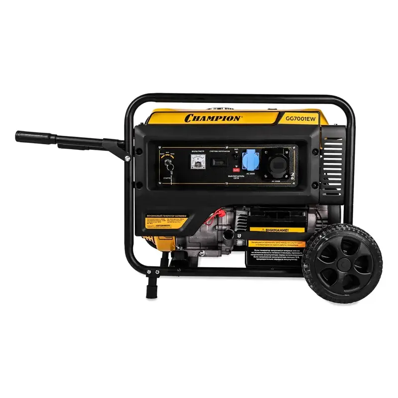 Генератор бензиновый Champion GG7001EW представляет собой источник качественного тока. Контроль за напряжением обеспечивает стабильность синусоиды даже при резком изменении уровня потребления электротока как в большую, как и в меньшую сторону. Также устройство защищено от влаги со всех сторон. В том числе имеют надежную влагозащиту и сами розетки - на них установлены заглушки, которые исключают попадание воды на контакты. Это защищает от короткого замыкания при работе на улице в дождливую погоду.