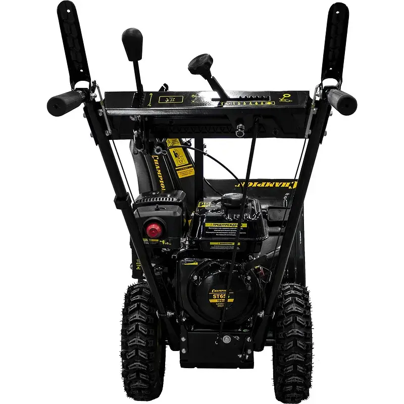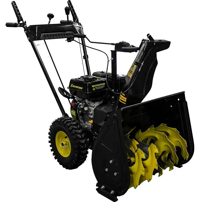 Снегоуборщик бензиновый Champion ST655 оснащен двигателем мощностью 6,5 л.с. и ковшом с высотой захвата 54,5 см. За счет этого можно убирать обширные территории даже с небольшими сугробами.