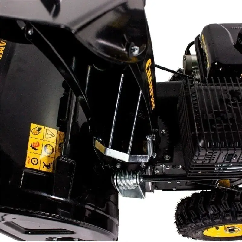 Снегоуборщик бензиновый Champion ST762E оснащен двигателем мощностью 6,5 л.с. и ковшом с высотой захвата 51 см. За счет этого можно убирать просторные территории даже с небольшими сугробами.