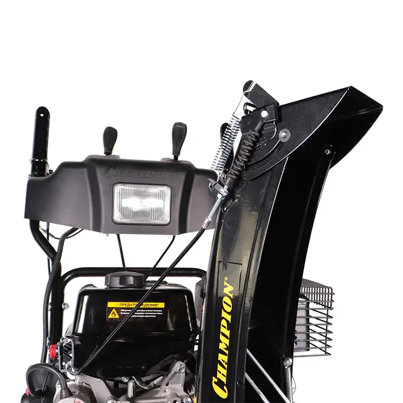 Двухступенчатая система выброса повышает качество уборки. При этом снег сначала измельчается металлическим шнеком и подается под кожух, а затем крыльчаткой отбрасывается через желоб. Для защиты редуктора снегоуборщика CHAMPION ST861 от поломки предусмотрены специальные болты, которые срезаются при заклинивании шнека, столкновении с твердыми предметами или ледяным затором.