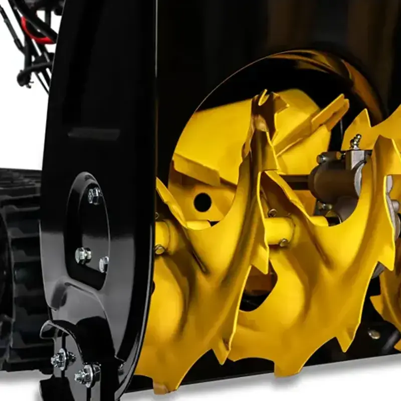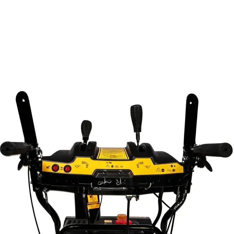 Все элементы управления бензинового снегоуборщика CHAMPION удобно расположены на панели оператора: рычаги тяги переключения передач и поворота гусениц, ручка изменения направления выброса, кнопки включения освещения и подогрева рукояток. Наличие шести передних передач и двух скоростей заднего хода обеспечивает высокую маневренность машины. В зависимости от плотности и высоты снежного покрова можно выбрать необходимый темп передвижения.