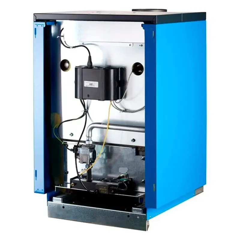 - Чугунный теплообменник обеспечивает надежность работы и долгий срок службы котла.