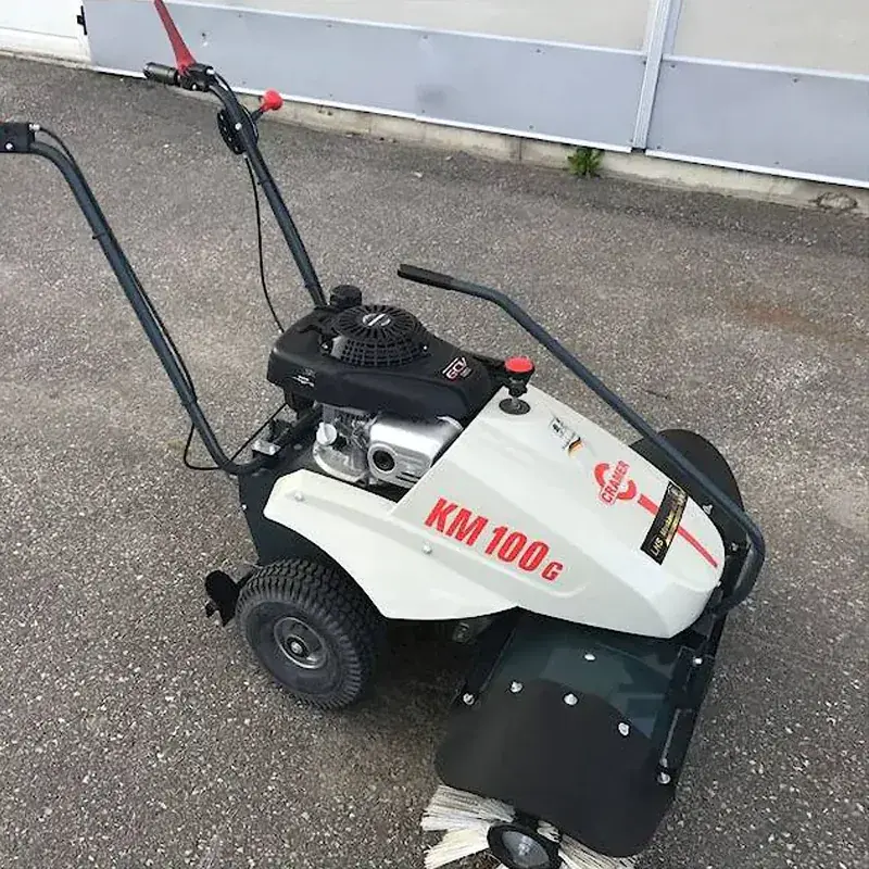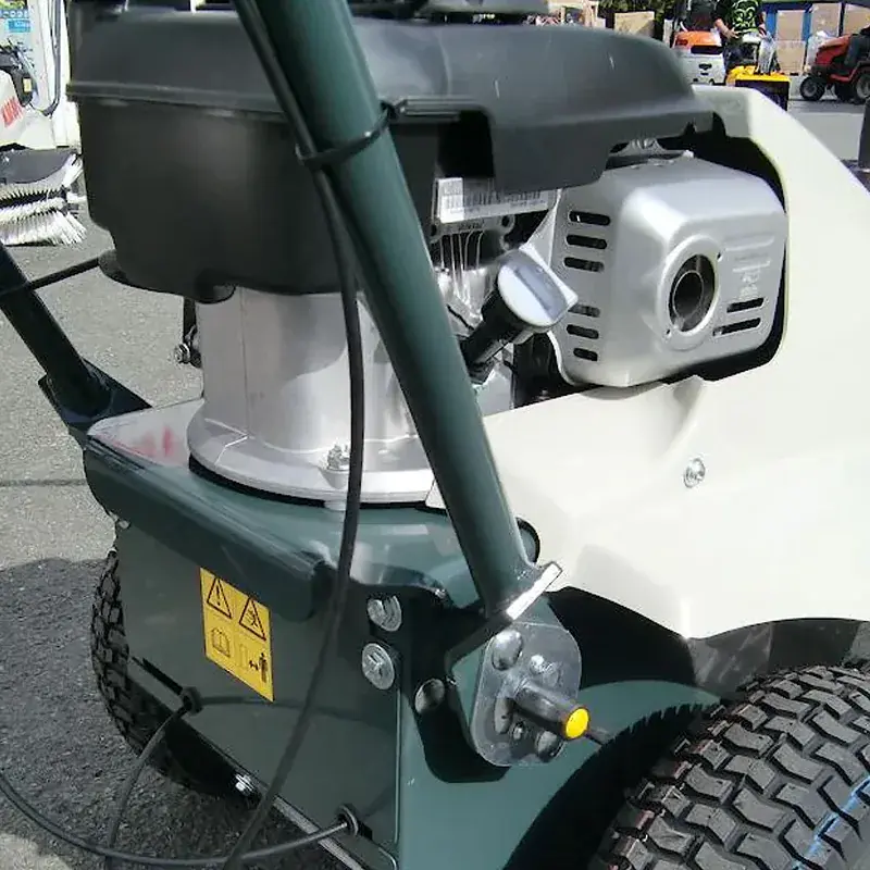 Предусмотрена регулировка высоты всасывающего патрубка (8 ступеней). Рычаг расположен на рукоятке. Агрегат укомплектован мощным двигателем Honda GX160 5.5 л.с., характеризующимся долгим сроком службы. Также мусоросборником, рассчитанным на 240 литров отходов. Благодаря приводу на задние колеса, пылесос самостоятельно перемещается по территории, необходимо лишь направлять агрегат в нужную сторону.