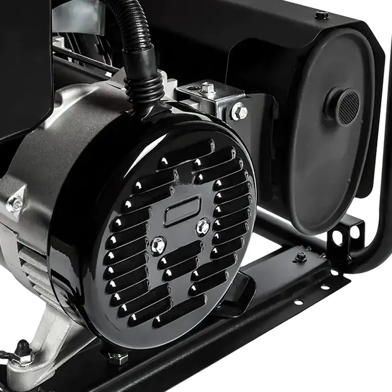 Для защиты основных узлов бензогенератора DDE G650E3 от повреждений предусмотрена рама. Она представляет собой металлическую трубу с толщиной стенок 2,5 мм, которая огибает весь корпус. По бокам рама образует рукоятки для переноски, а нижняя часть служит в качестве устойчивой опоры. Для снижения вибраций она оснащена демпферными подушками. За счет этого генератор меньше шумит во время работы, а внутренние элементы не будут подвергаться сильной тряске. Для альтернатора используется медная обмотка. В отличие от алюминиевой, она более прочная, лучше проводит ток и медленнее нагревается.