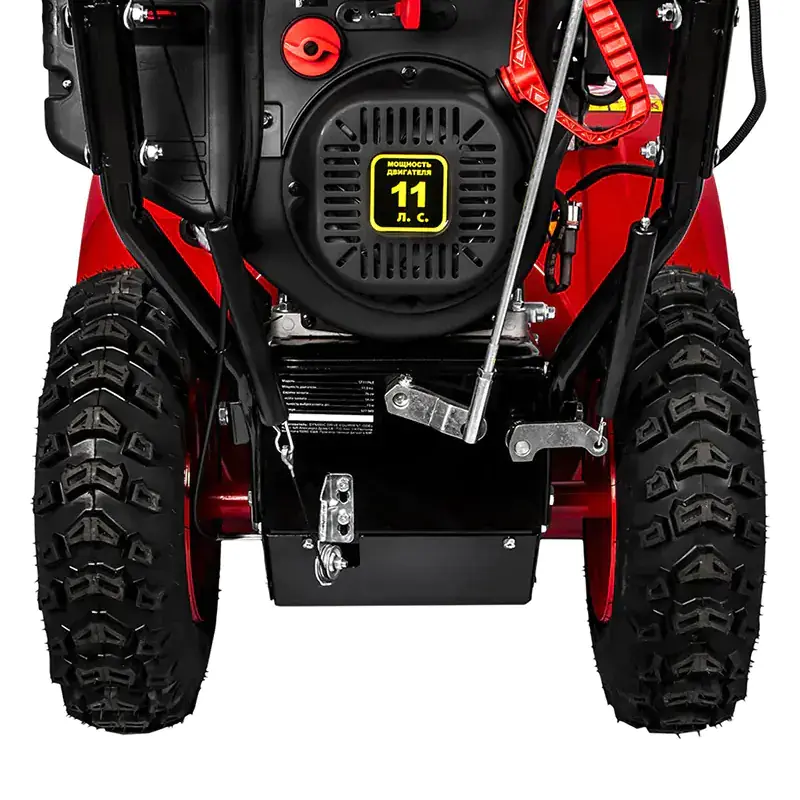 Модель оснащена большими колесами тракторного типа. Агрессивный протектор обеспечивает хорошее сцепление как с рыхлым снегом, так и с обледеневшей поверхностью.
