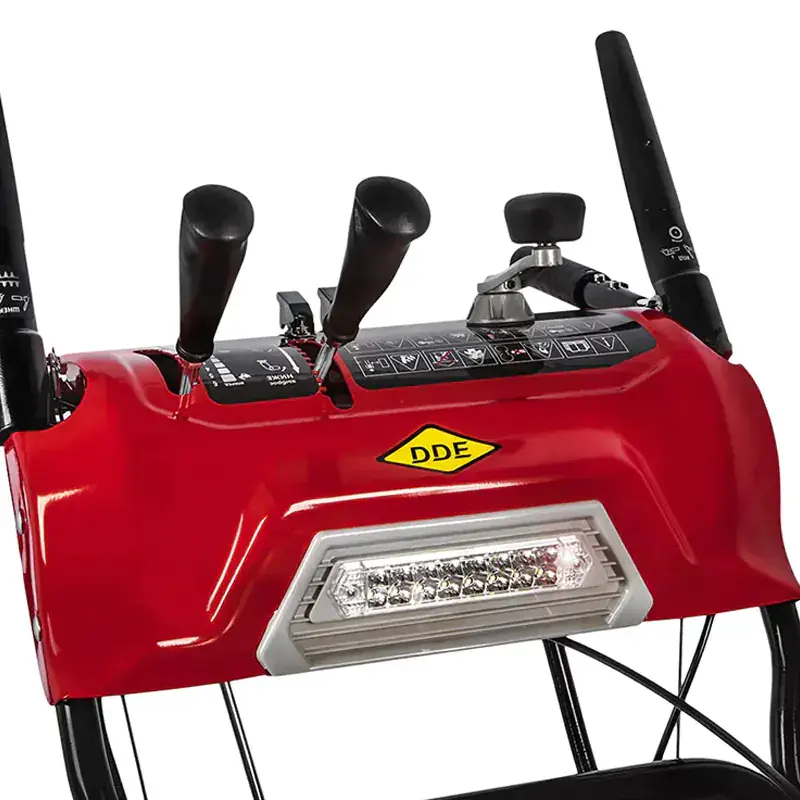 Бензиновый снегоуборщик DDE ST1176LE с шириной захвата в 76 см подходит для расчистки спортивных стадионов, городских парков, детских площадок и т.д. На панели управления размещена светодиодная фара, которая позволит работать в темное время суток. Самоходный тип перемещения модели позволяет расчищать участки в течение длительного времени, не отнимая у вас много сил.