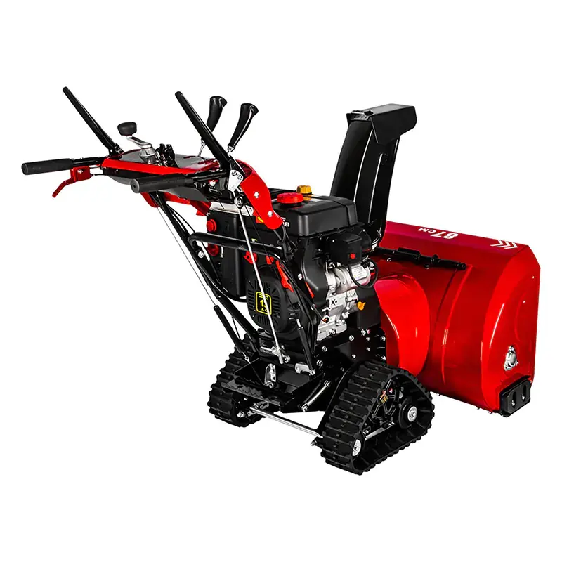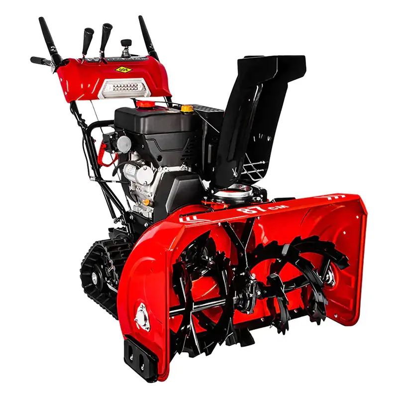 Бензиновый снегоуборщик DDE с шириной ковша 87 см подходит для уборки снега на территориях площадью до 800 м2. Гусеницы треугольной формы обеспечивают хорошую проходимость по льду и неровным поверхностям. За счет этого снегоуборщик будет полезен для уборки территорий ферм, загородных участков, общественных скверов, парковок и т.п.